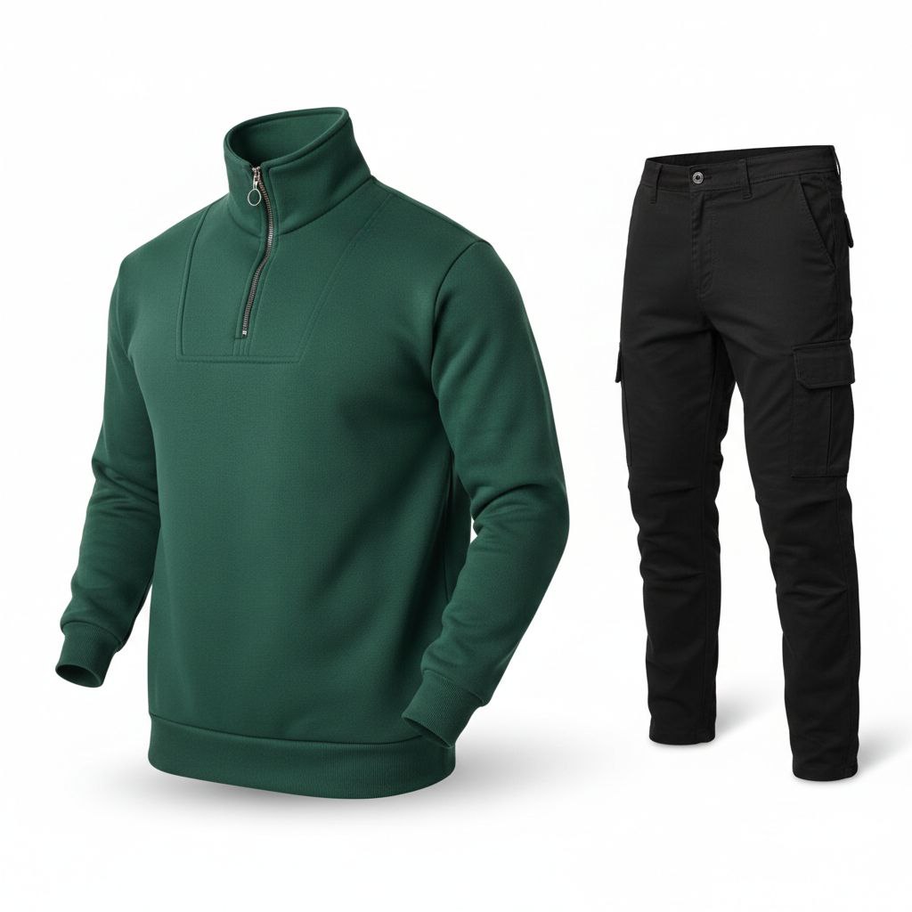 یک ست اسپرت و شیک برای استایل روزمره، شامل دورس نیم‌زیپ و شلوار بنگال با جنس مرغوب و طراحی کاربردی.